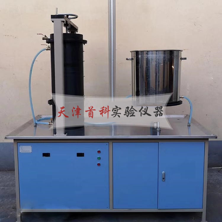 本試驗符合SL237-056-1999水電水力工程粗粒土試驗規(guī)程,試驗方法采用滲透水流從下向上,適用于粗粒土,用于測定粗粒土的滲透系數(shù),干密度空隙率,滲透降坡,滲流流速等參數(shù)。